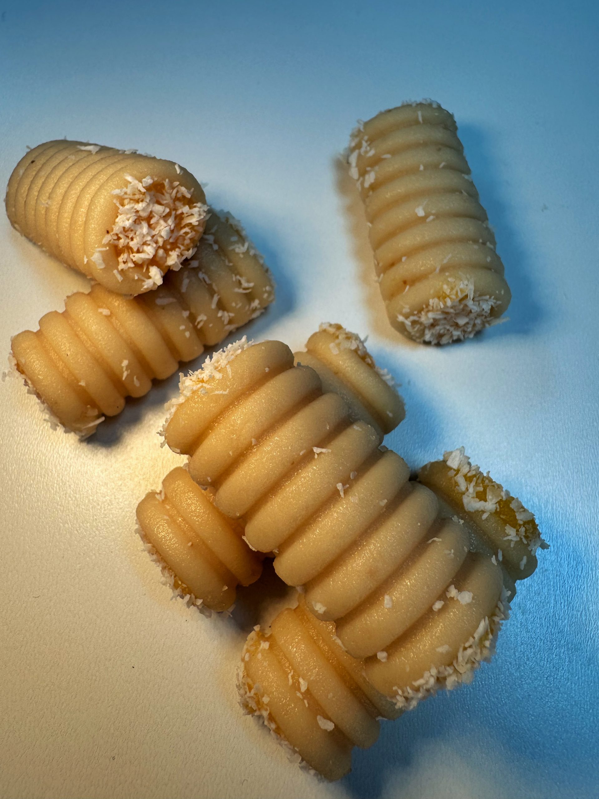 Postre tradicional para el Día de Todos los Santos. Huesitos de Santo rellenos de yema.